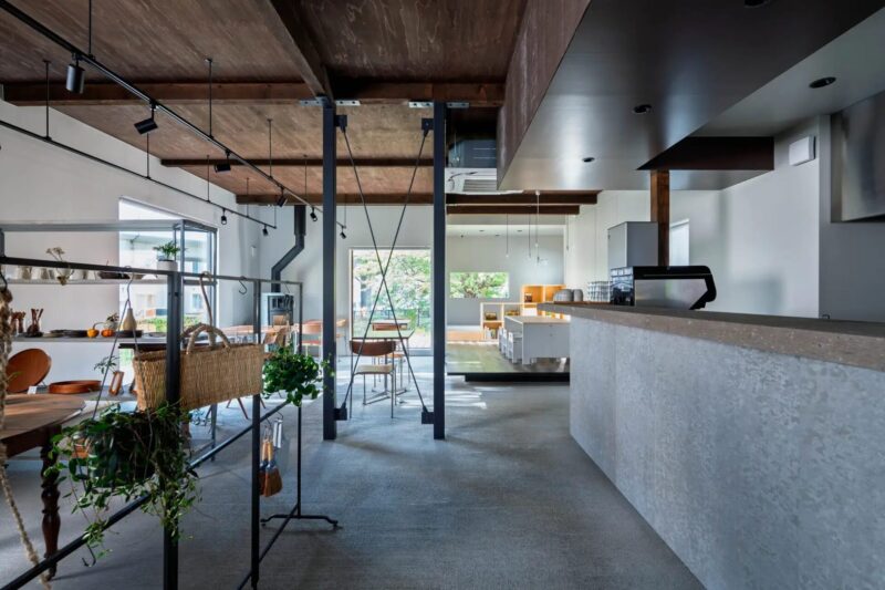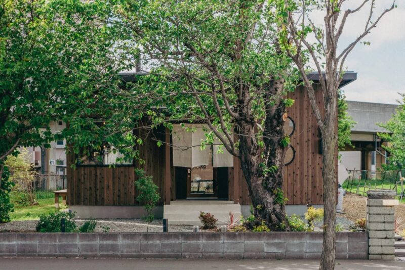 昭和57年築の平屋住宅をリノベーションした「リノベスランド花レ」は、四方を囲む桜と薪ストーブが灯る心地よい空間へ再生。インテリアショップ「tokoro.」や、おむすびと豚汁の飲食店「daria」が入居し、暮らしとデザインをテーマにしたイベントを定期開催しています。