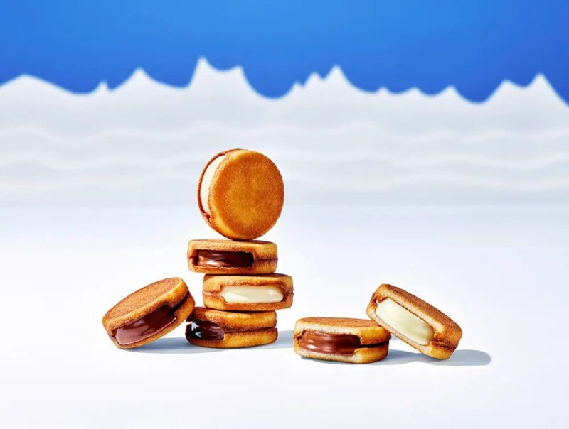 累計販売2,000万枚を突破。直火で一つずつ挟み焼きしたラングドシャの香ばしいカリカリ感と、冬の放牧牛乳を使った生チョコレートのなめらかさを両立した、生チョコレートサンドクッキーです。オンライン限定で、版画家・大谷一良氏「春を待つ日」の作品を配した特別デザイン缶も登場します。