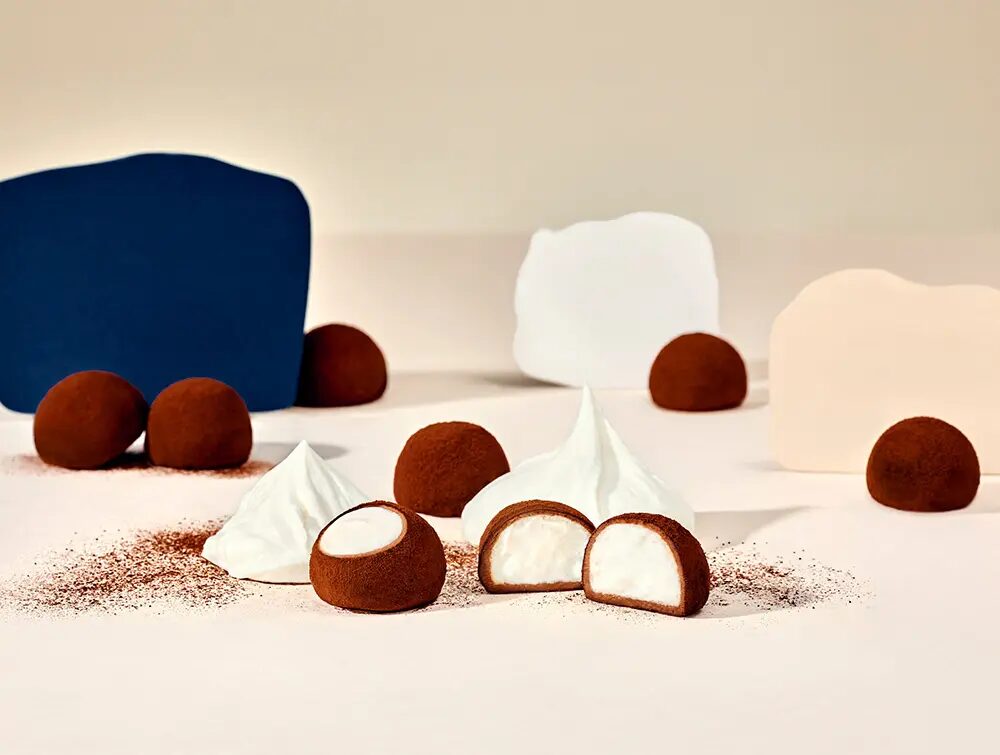 「スノーボール」を一回り大きくし、ビターなアーモンドチョコレートを纏わせた新感覚の生トリュフ。2025年のバレンタインで登場し、今シーズンはオンラインで通期展開します。
