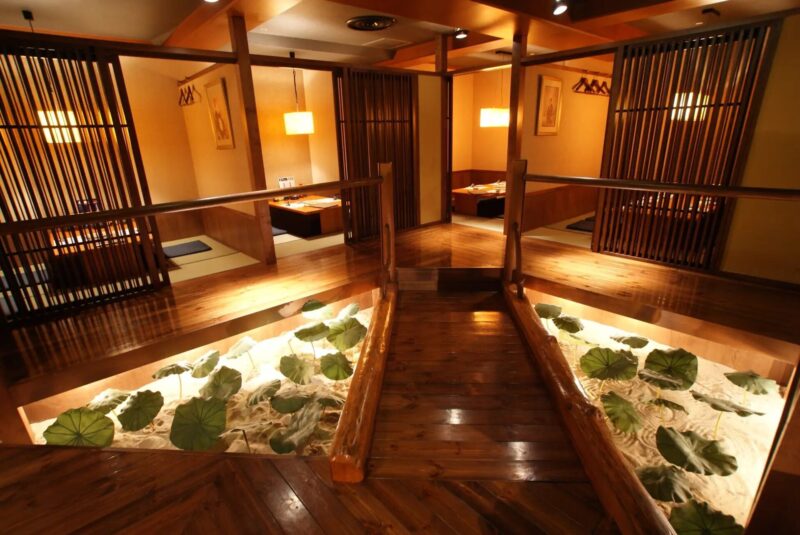 店内は個室やカウンター席を備え、炭火焼きや刺身、寿司など多彩な和食とともに、職人との会話も楽しめます。