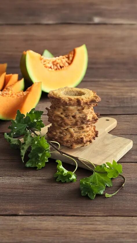北海道らしい新フレーバーとして登場したメロンクリスピーバウムクーヘンも、切り株のようなフォルムと、しっとり生地×サクサクのフールセックによる軽やかな口当たりが特徴です。