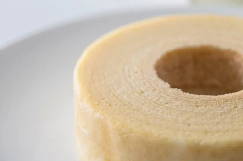 発酵バターの香り豊かな生地は、もっちりとしたハードバウムクーヘン。その周りをカリッとしたフールセックが包み込む、二層の食感が特徴です。まさに「見たことも、食べたこともない、とっておきのバウムクーヘン」として支持されています。