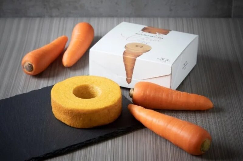 JAふらの管内産のにんじんを使ったキャロットバウムクーヘン。