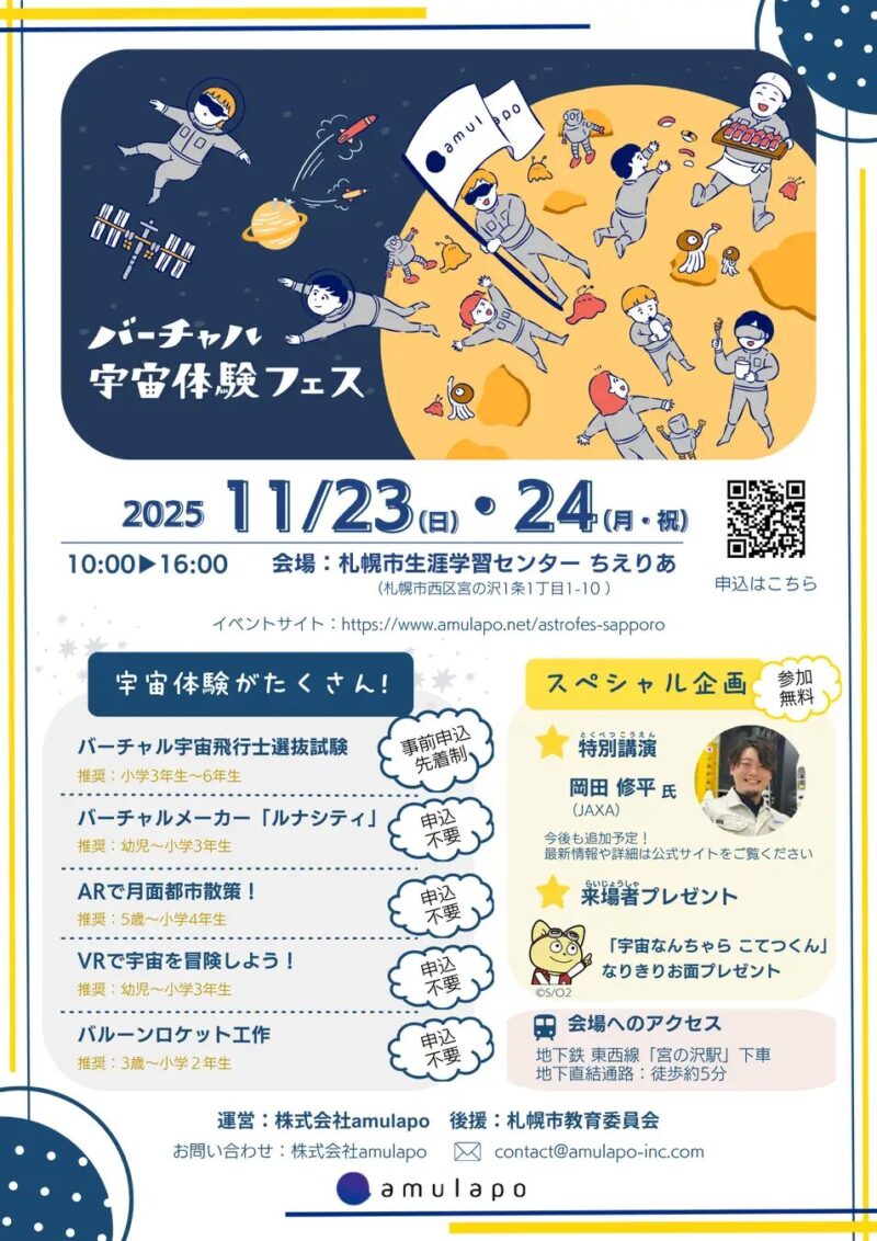 札幌・西区の「札幌市生涯学習センター ちえりあ」で、宇宙好きキッズにはたまらない体験イベント「バーチャル宇宙体験フェス in 札幌市」が開催されます。