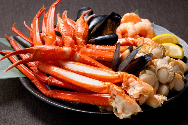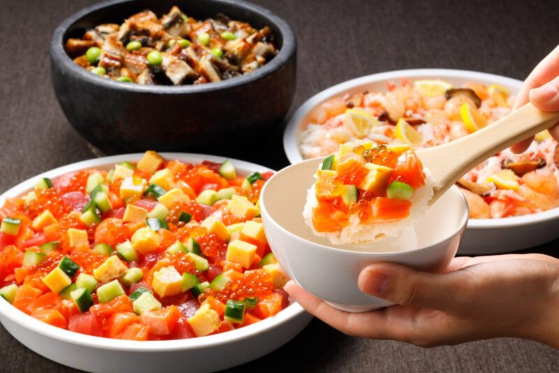 海鮮メニューは「ボイル蟹とシーフードの海鮮プラッター」「海鮮ちらし3種」「天ぷら3種」などが登場します。実演では、人気の「ローストビーフ」を“山わさびの和風ソース”で提供します。そのほか「海老の甘辛チリソース煮込み」をはじめとしたメニューや、パティシエ特製のデザートも用意されています。