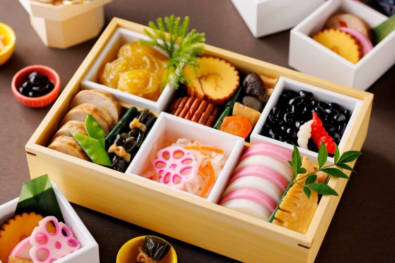 「2025-2026年末年始ディナーブッフェ」は、2025年12月31日(水)から2026年1月1日(木・祝)までの2日間に開催されます。年末年始にふさわしいおせち料理を8種用意し、「伊達巻」「筑前煮」「栗きんとん」などが並びます。