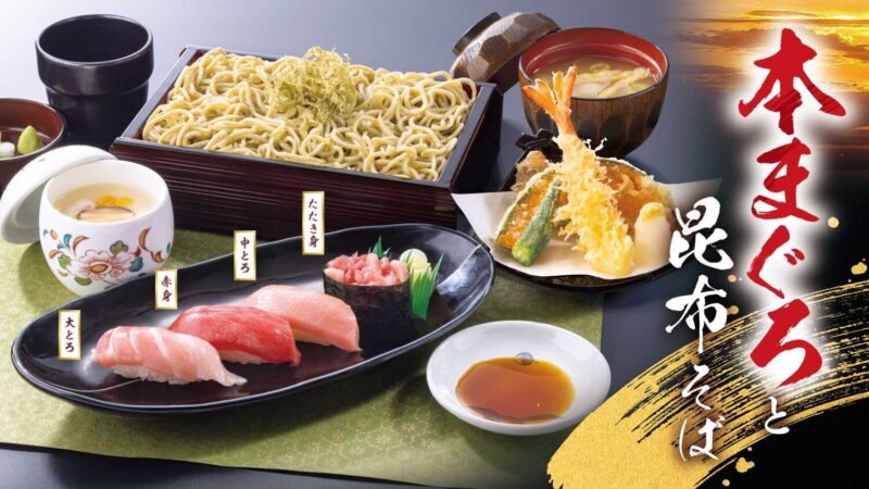 「北海道生まれ和食処とんでん」の北海道店舗で、本まぐろと季節の変わりそば「昆布そば」を組み合わせたメニューを、2025年12月26日(金)から販売開始しました。今年は、本まぐろとバチまぐろの刺身が一緒に楽しめる「まぐろのお楽しみ膳」が新登場します。