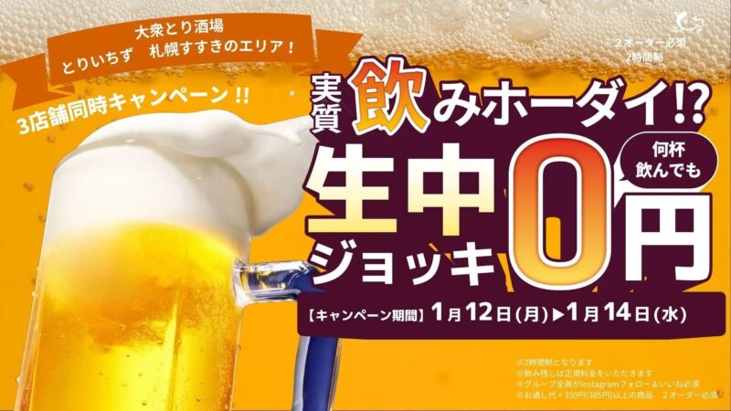 | 実施店舗 | とりいちず 札幌すすきのノルベサ店/札幌すすきの2号店/札幌すすきの3号店 |