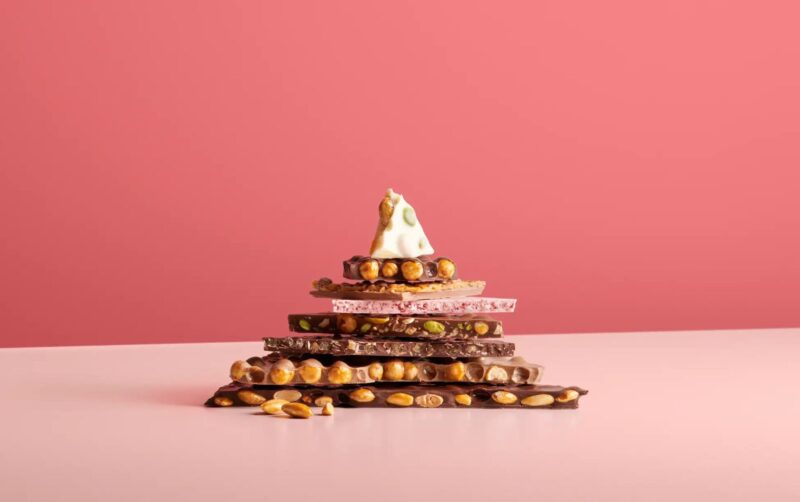 ブランドを象徴するのが、量り売りスタイルの板チョコレート「FrischSchoggi(フレッシュ・ショギー)」です。さまざまなフレーバーの板状チョコレートを、好みの大きさに割って購入できます。