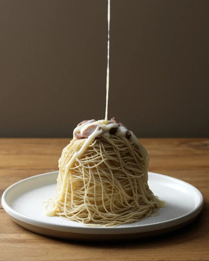 数量限定の「ふわほろモンブラン~黄金のミルク~」は、利平栗を使ったマロンクリームを絞りたてで味わうモンブランです。ジャージーミルクアイスとルタオオリジナル生クリームを、極細のモンブランクリームで包み、ジャージーミルクのソースをかけて仕上げます。こちらは通年で、9:00~12:00の数量限定です。