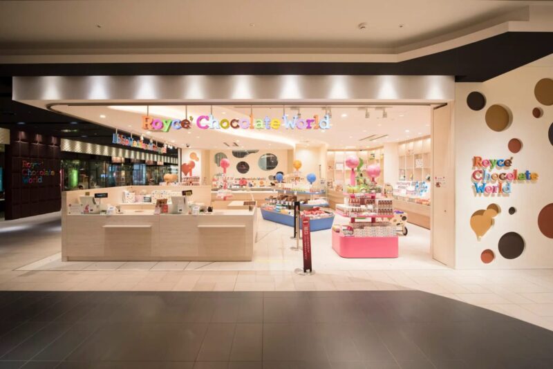 ロイズ チョコレートワールドは、新千歳空港ターミナルビル3階(スマイル・ロード)にあり、国内空港初の空港内チョコレート工場、ミュージアム、ショップ、ベーカリーを併設しています。ショップでは同店限定商品が約100種類並び、ベーカリーでは板チョコレートをまるごと1枚挟んだ「グテ」などチョコにこだわったパンも販売しています。