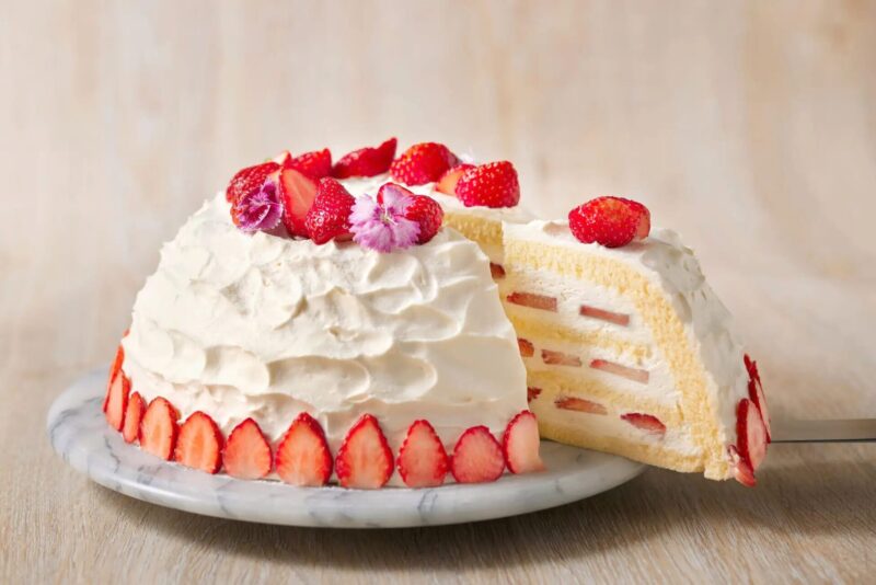 デザートは、ドーム型ケーキ「おおきなイチゴのズコット」が登場。15~20名用の大きなサイズで、パティシエが切り分けます。さらに「チョコレートファウンテン」も用意し、いちごやドーナツ、マシュマロをチョコレートでコーティングして楽しめます。