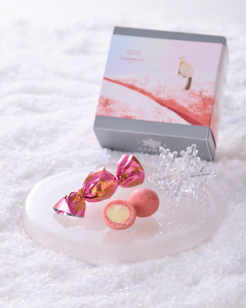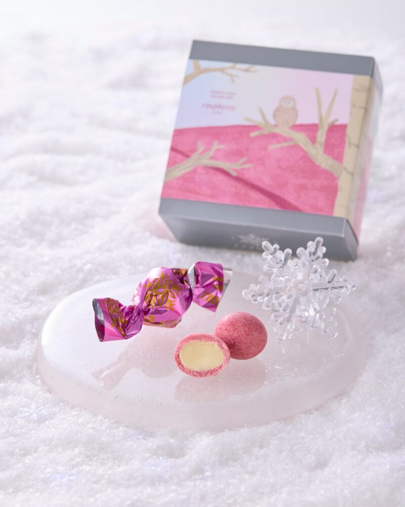 マカダミアナッツにチョコレートをコーティングした「ショコラボール」は、リンゴ、ビター、ラズベリー、抹茶、ブルーベリー、イチゴ、キャラメルなどのフレーバーがそろいます。