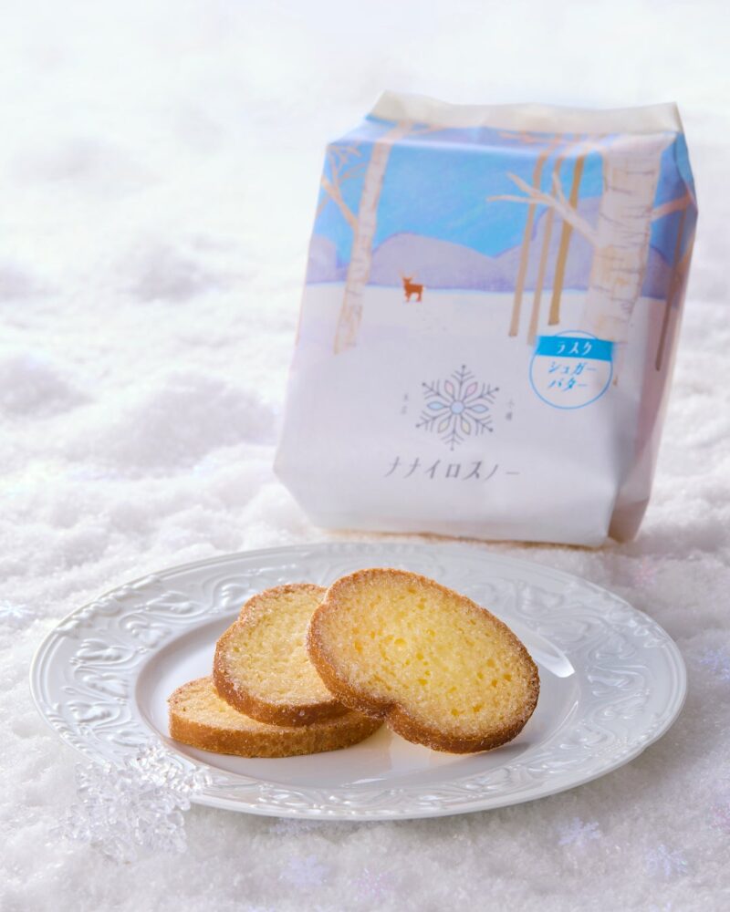 小樽のまちは季節や天気で表情が変わり、真っ白な雪の世界も光があたると七色の輝きが生まれます。「ナナイロスノー」は、そんな小樽の景色のように、人の心をふわっとあたためるお菓子でありたいという願いを込めて名づけられました。