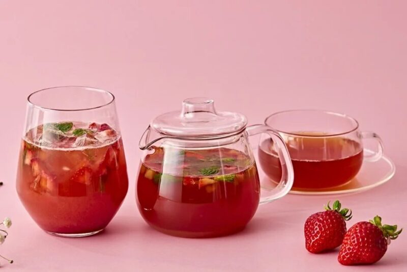 パンケーキにあわせて、ストロベリードリンクも展開されています。フレーバーティーとティーソーダが用意されており、甘酸っぱい果実感にエルダーフラワーの爽やかな香りを重ねた仕立てです。