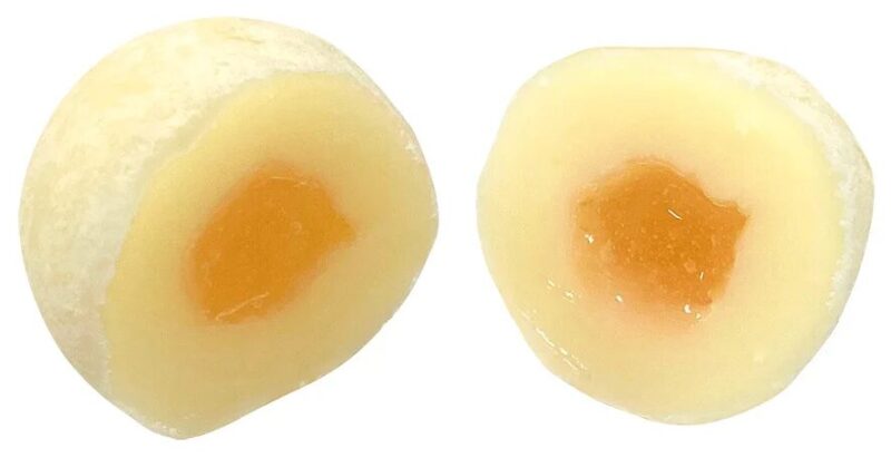 桜と苺のソースをしのばせた甘酸っぱい苺ムースを、もちもちの求肥で包み込んだ春色のドームケーキです。苺と桜が織りなすやさしいハーモニーが楽しめます。