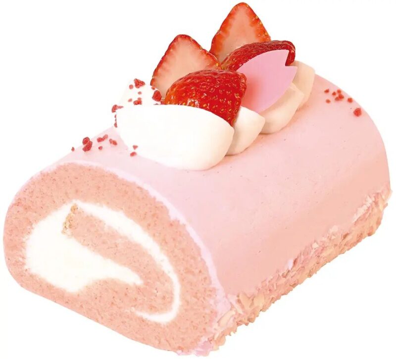 ピンク色のスポンジ生地で、乳味豊かなミルキークリームを巻き、桜クリームで春らしい色合いに仕上げたロールケーキです。家族や友人とシェアして楽しみやすい一品です。