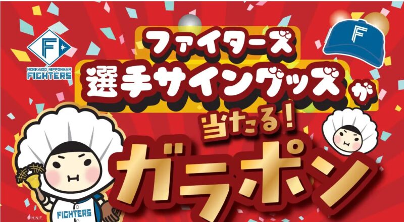 さらに、ホタテのノアのInstagramまたはXをフォローすると、ガラポン抽選に参加できます。ファイターズ選手の直筆グッズや、ファイターズとホタテのノアのコラボグッズなどが当たる企画です。サイングッズの選手は選べず、当日まで非公開ですが、事前に公開される場合はInstagramで発信されます。