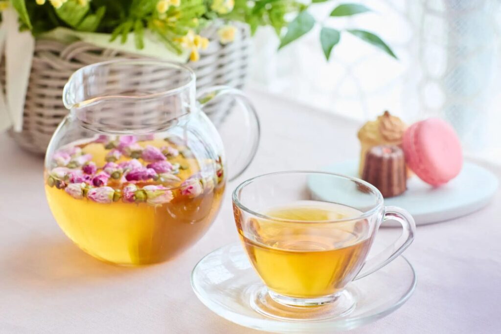 ドリンクには、このプログラム限定でブレンドしたオリジナルのフラワーティーが登場します。小樽の春をイメージして作られたもので、お湯を注ぐと北海道のシンボルであるハマナスの花が浮かびます。
