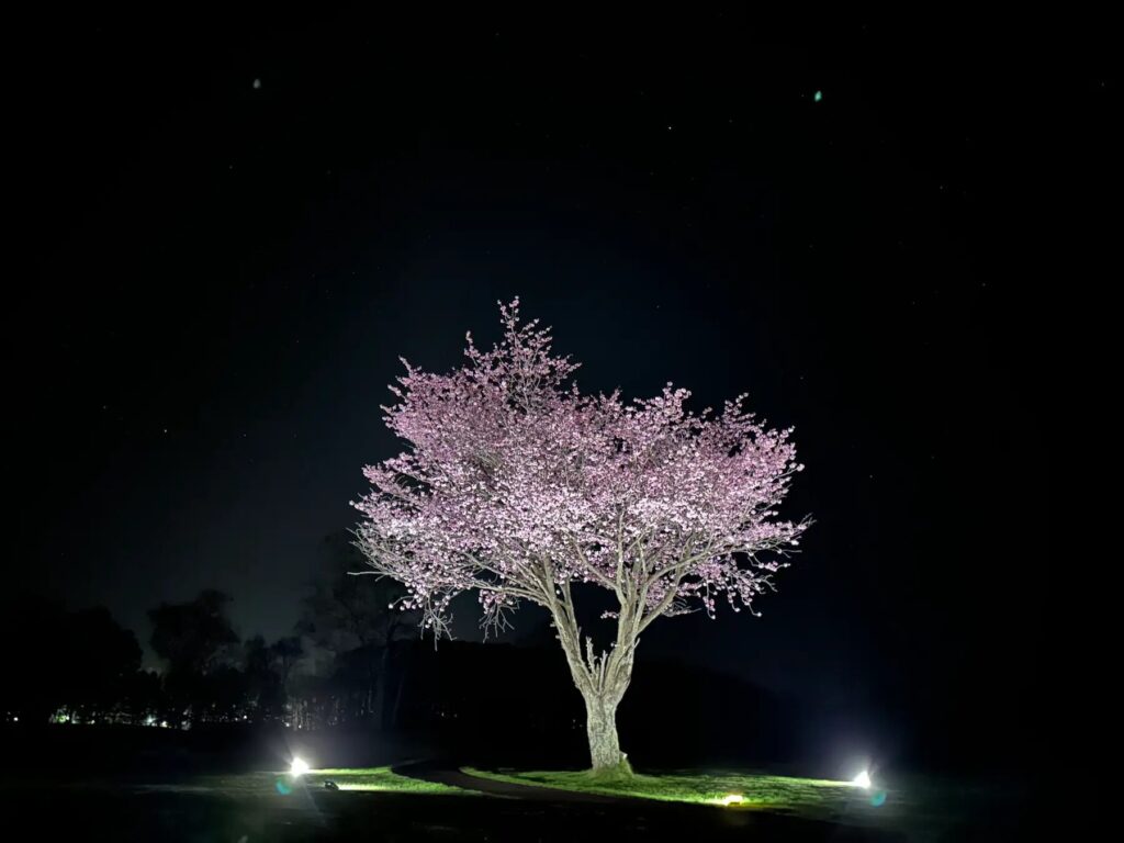 さらに、ゴルフ場には外灯がなく、街なかの明かりも少ないため、天気が良ければ満天の星空も楽しめます。桜と星空が一緒に見られるのは、夜のゴルフ場ならではの魅力です。