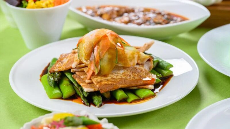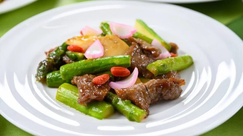 蒸したアスパラガスと雲白肉を組み合わせたメニューです。