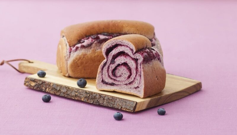 ブルーベリーブレッドは、生地にもブルーベリーソースを練り込み、中にはたっぷりのブルーベリージャムを巻き込んだ人気商品です。リンゴスターは、サクサクのデニッシュ生地に角切りリンゴとカスタードクリームを合わせたパンです。