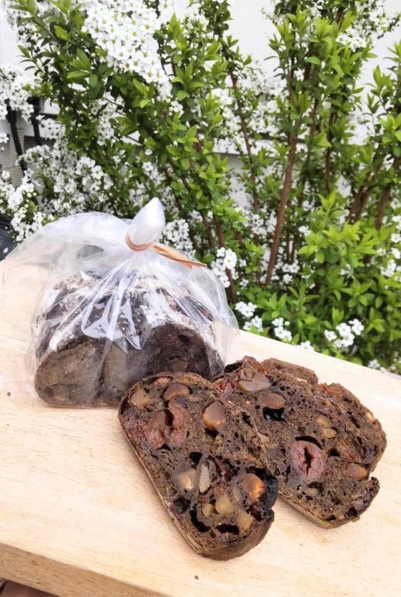 ほうじ茶ブレッドは、ほうじ茶を練り込んだ生地に、バルサミコで煮たドライストロベリーやゆずピール、ナッツなどを閉じ込めて焼き上げたパンです。サングリアロッソは、赤ワインに漬けた焼きレーズンにオレンジピールと4種のスパイスを練り込んだ、もちもち食感のパン。アガベレモンリュスティックは、アガベシロップで漬けたイタリア産レモンピールやカシューナッツを使っています。