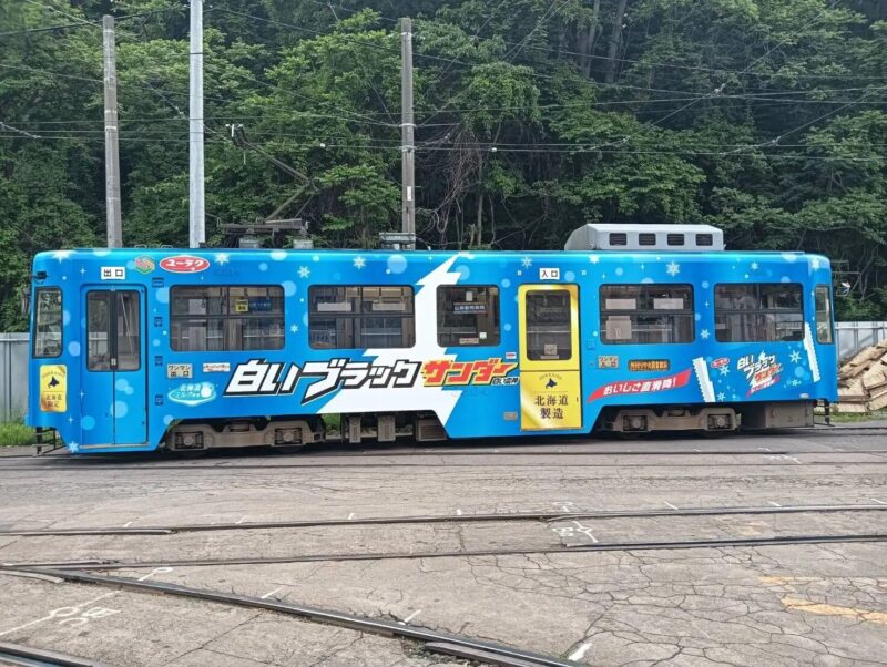 15周年施策のひとつとして、札幌市内では「白いブラックサンダー号」のラッピング電車も運行しています。札幌市の路面電車をラッピングした企画で、北海道ならではの周年感を街なかでも感じられる内容です。