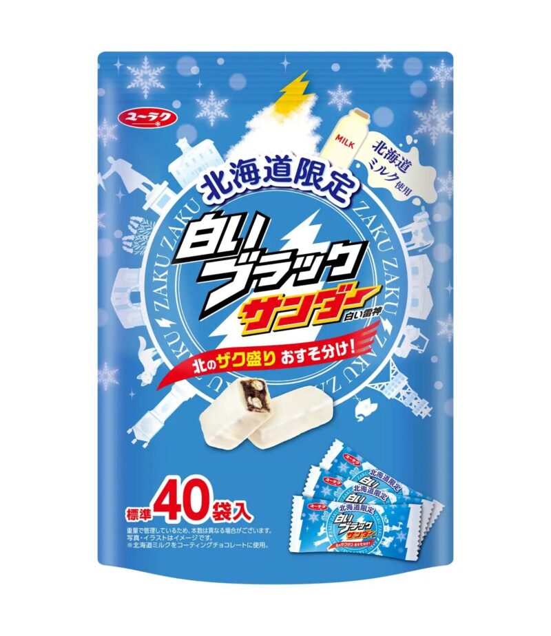 白いブラックサンダーは現在、10袋入り、16袋入り、24袋入り、40袋入りのラインアップで展開されています。自分用から大人数向けまで選びやすく、おみやげとして渡しやすいのも引き続き魅力です。