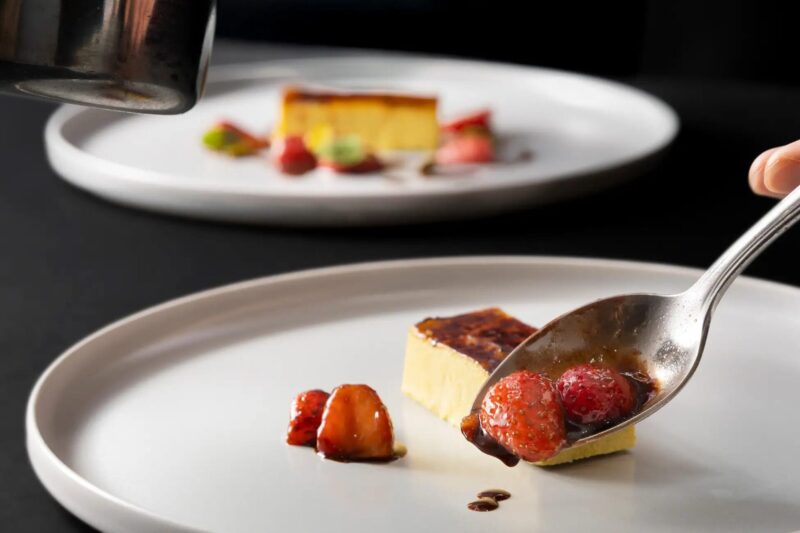 会場では、実演メニューとして「苺のソテーとピスタチオのカタラーナ」が登場します。ほかにも、苺とピスタチオのタルト、苺とピスタチオのオペラ、苺とピスタチオのミルフィーユ、苺とピスタチオのショートケーキなどが並びます。日替わりメニューを含むセイボリーや、ソフトクリーム、ジェラート、ソフトドリンクのフリードリンクも用意されます。