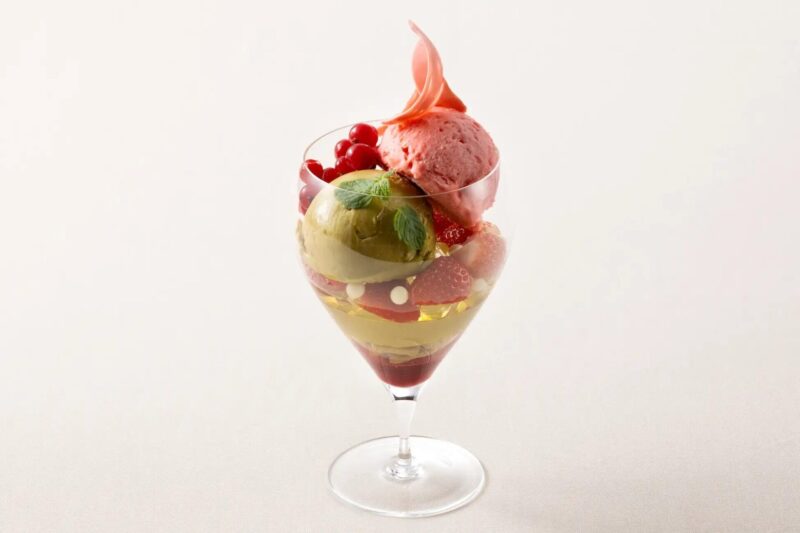 あわせて、「苺とピスタチオのパフェ」も登場します。ピスタチオの香ばしさと苺の甘酸っぱさが引き立つ春色のパフェで、提供時間は10:00から17:30までです。料金は2,800円で、コーヒーまたは紅茶が付きます。