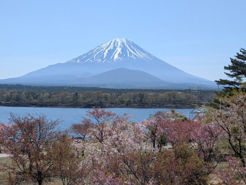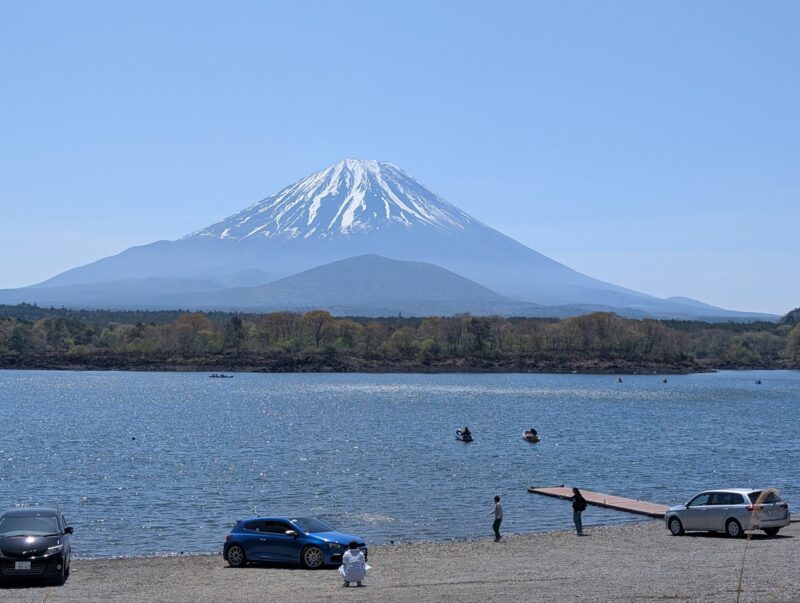 どうやら鑑賞スポットはここがいいらしい、ということで精進湖観光協会付近。